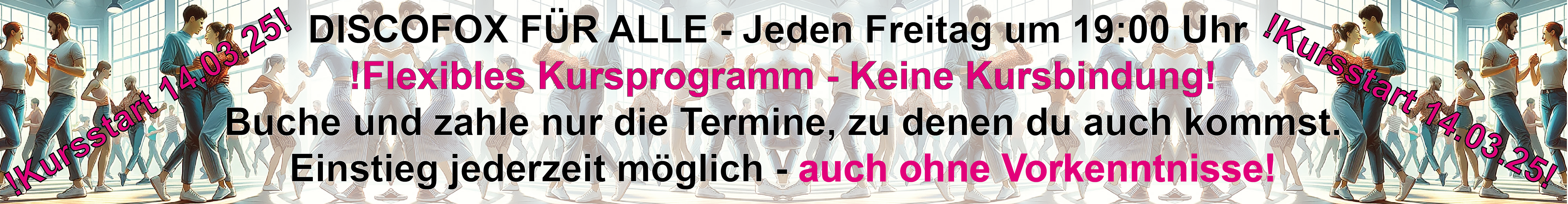 Discofoxkurse: Tauche ein in die faszinierende Welt des Discofox. Unsere Kurse sind für alle Niveaus geeignet – von absoluten Anfängern bis hin zu erfahrenen Tänzern.